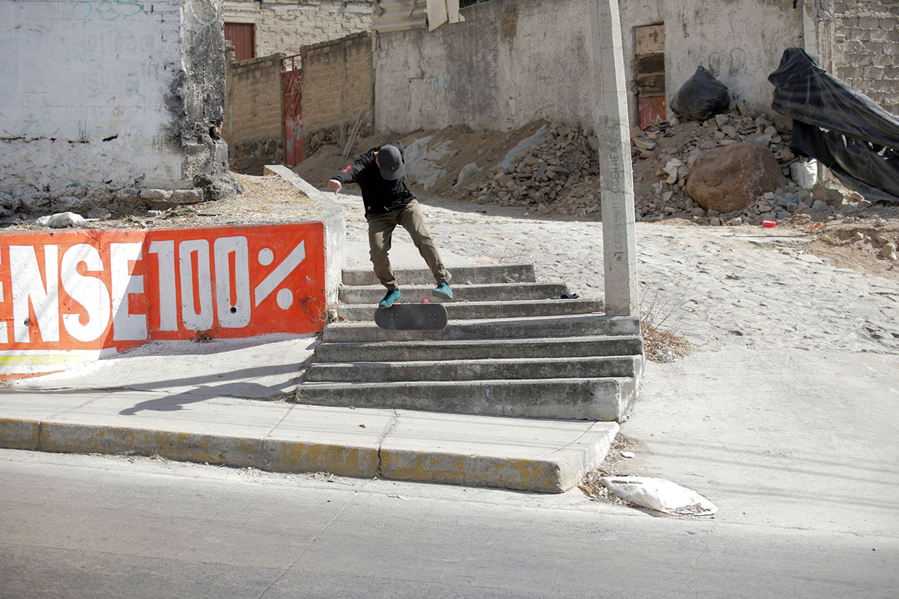 Morfo nos platica en su video entrevista sobre la secuencia anterior, un Frontside Bluntslide que armo en un muy creativo lugar para patinar, donde tu imaginación es tu único reto.