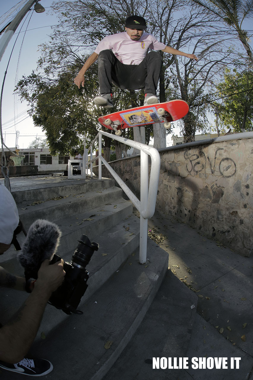 Nollie Shove It es muestra de que Morfo es un todo terreno al brincarse este riel de over, donde en los últimos intentos parecía que ya no saldría por el cansancio pero al final hubo victoria y fue muy agradable para todos los presentes ver el truco.