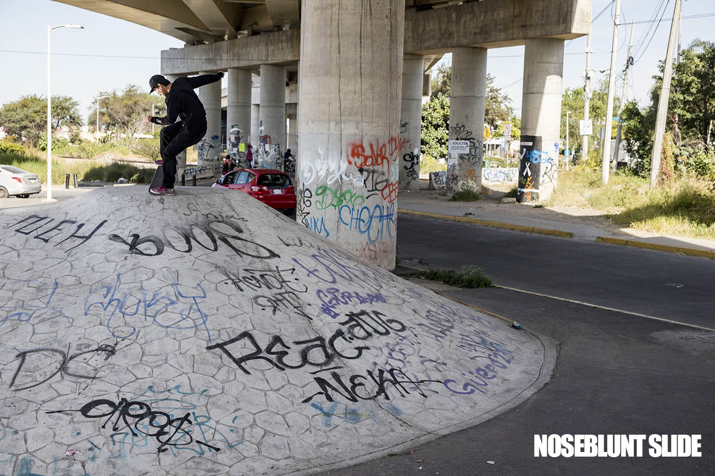 Hasta Tlajomulco de Zuñiga fuimos a trabajar para obtener este increíble Noseblunt Slide que a mi ver pocos había intentado deslizar en la punta de este tipo volcán de concreto.