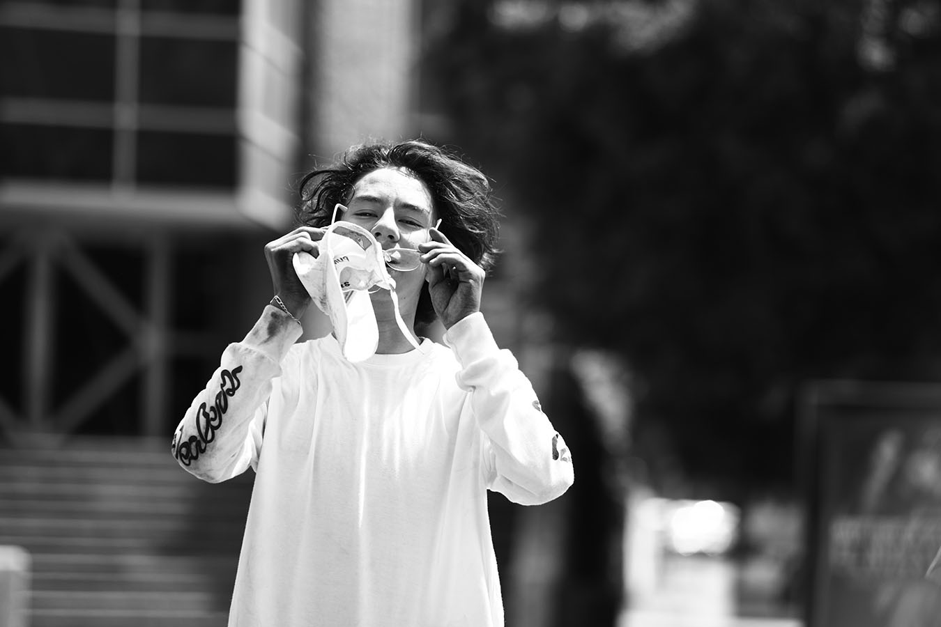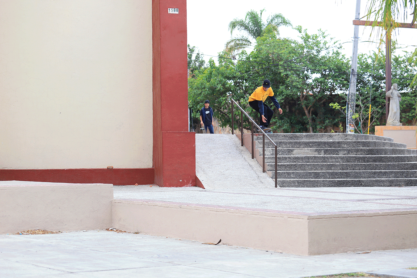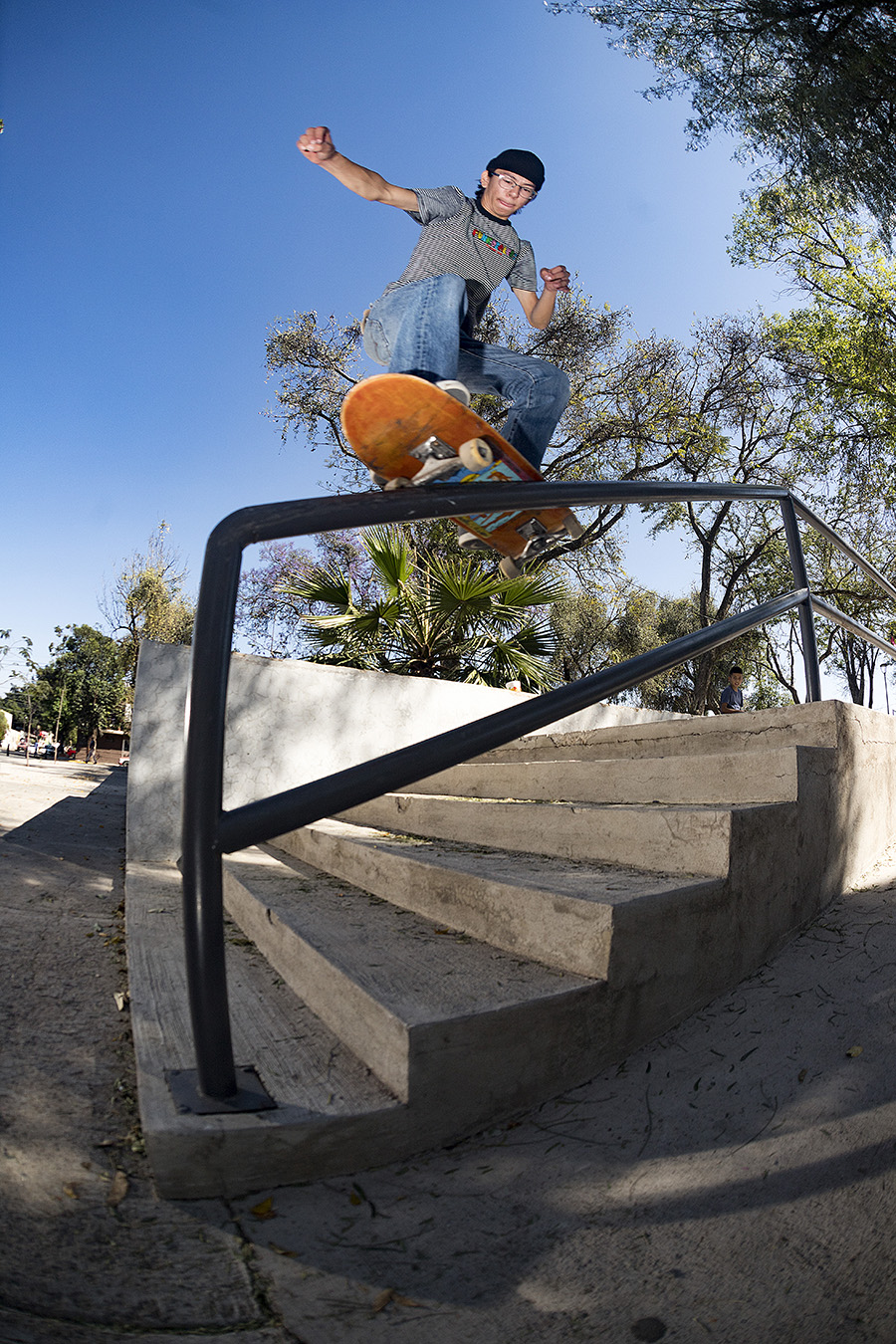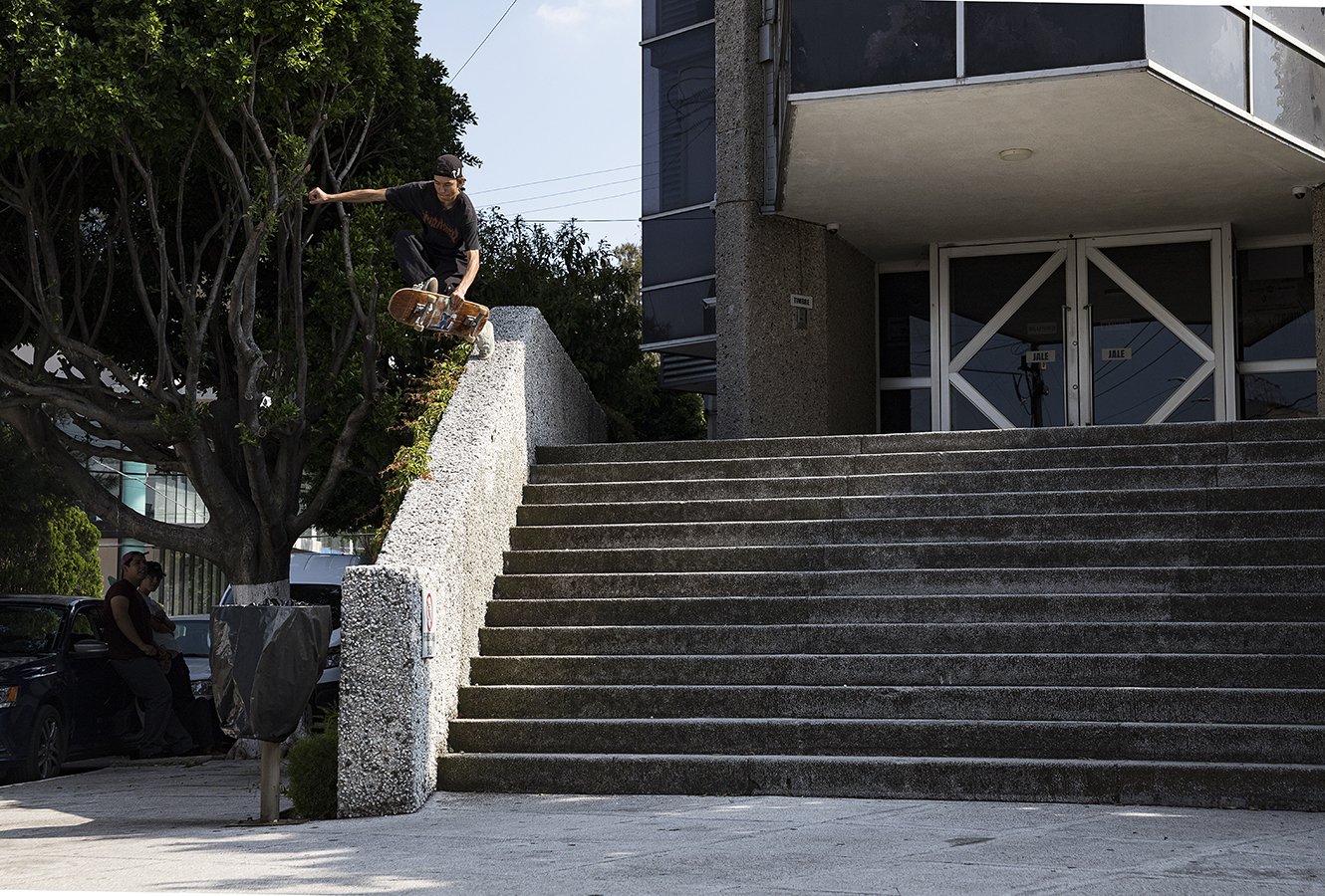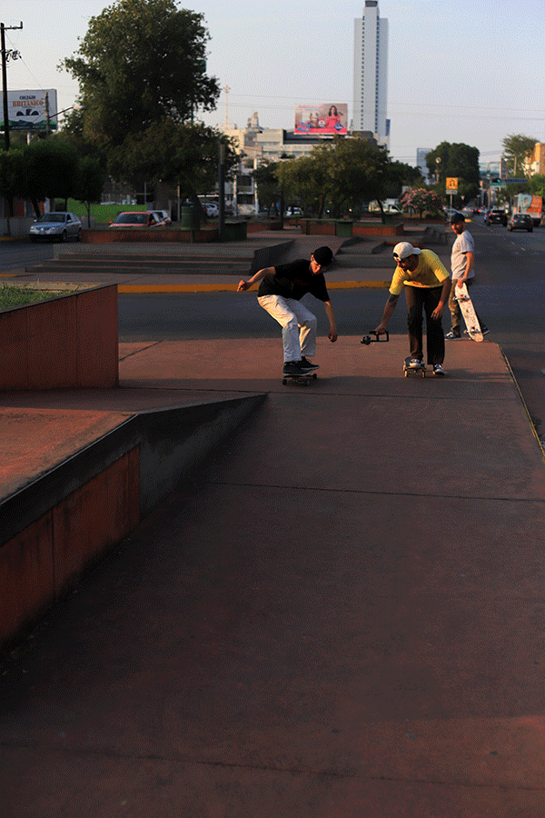 En el último truco del día Thomas estaba intentando una línea en un spot roñoso con un wallie al final, en la cual se tardó mucho en bajar. Yo estaba muy cansado por el sol y Thomas enojado por que no le salían los trucos y a base de insistir y motivarlo para llevarnos el clip fue como lo logró. Thomas es un patinador muy jovén con mucha creatividad y estilo uno de mis favoritos.