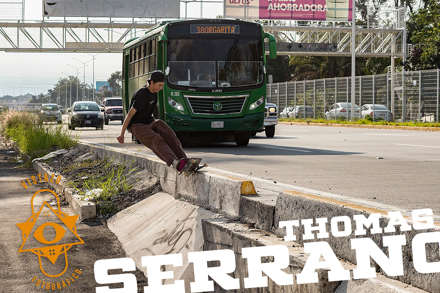 Para iniciar el vistazo de Thomas con un 50 grind retando un poco el peligro del tráfico del Anillo Periférico.