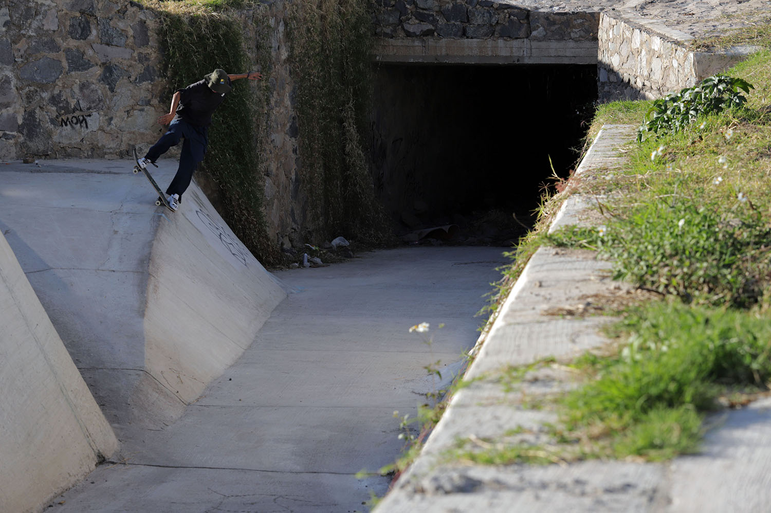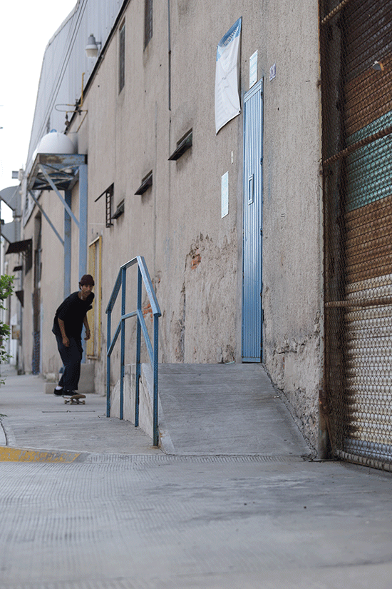 Dom. No había conocido una persona que nunca haya visto sin su skate, a veces me imaginaba que dormía con el patín al lado, es una persona extremadamente apegada al skate y desde que lo conocí y empezamos a grabar Videostill solo he visto su nivel subir en adición a un chingo de valentía, en especial por su particular gusto de elegir spots dónde solo se pueden hacer pocos intentos o de constante seguridad.